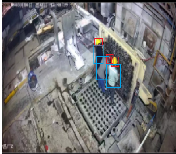 3、安全着装识别:在生产车间中,通过给普通摄像头接入AI算法进行场景检测,检测工作区域的人员着装是否符合要求,如果不符合着装要求则进行抓拍推送到指定的负责人中。